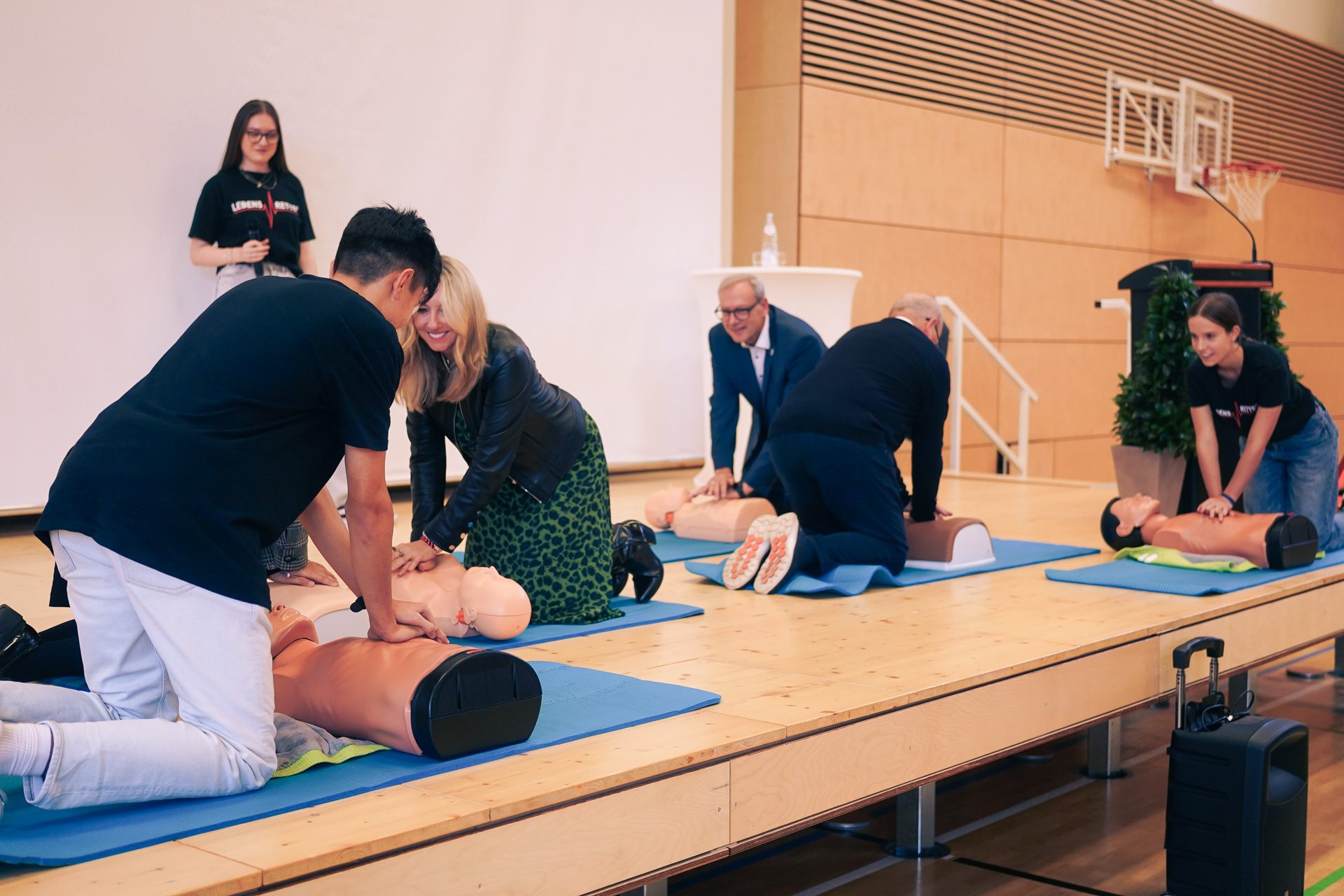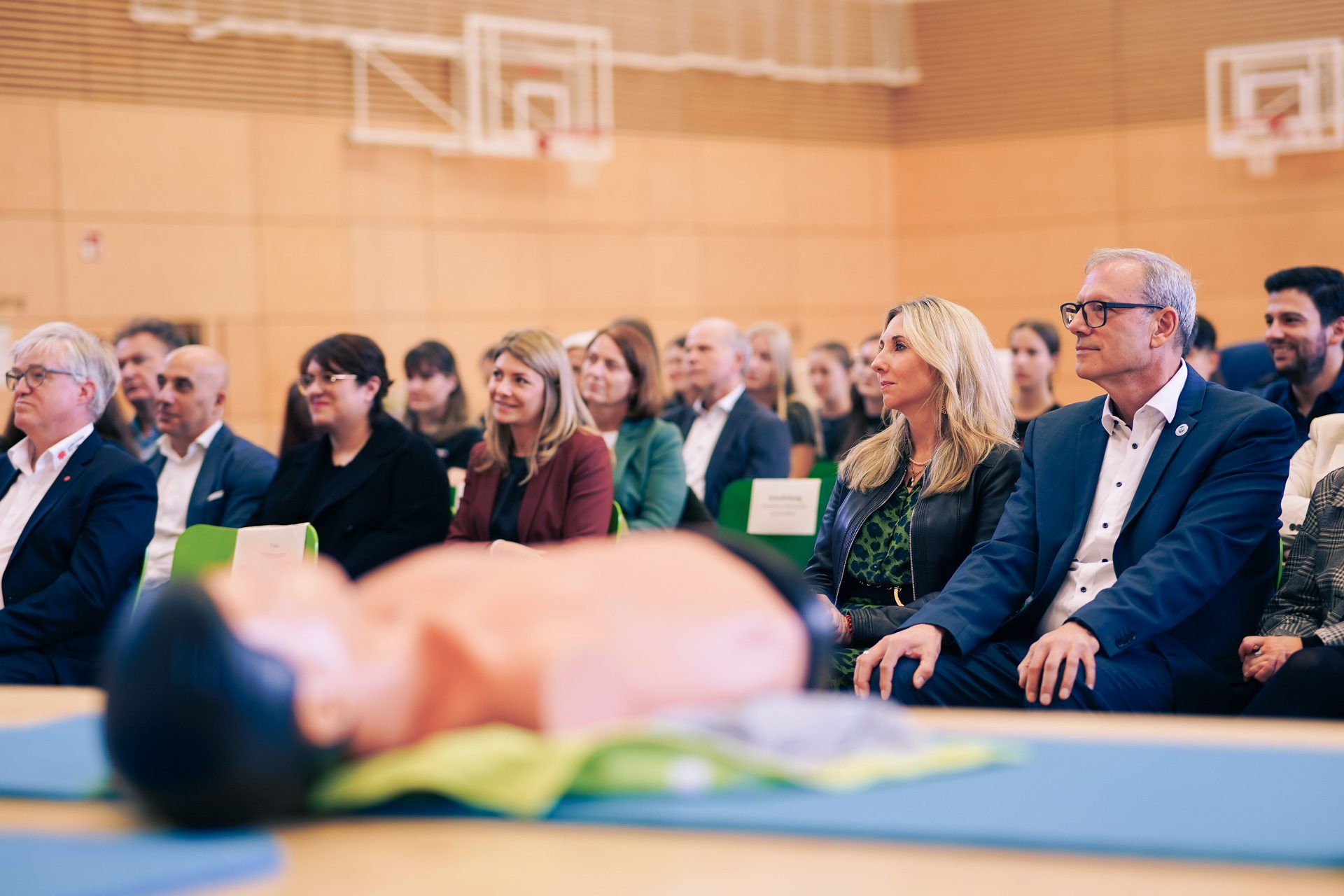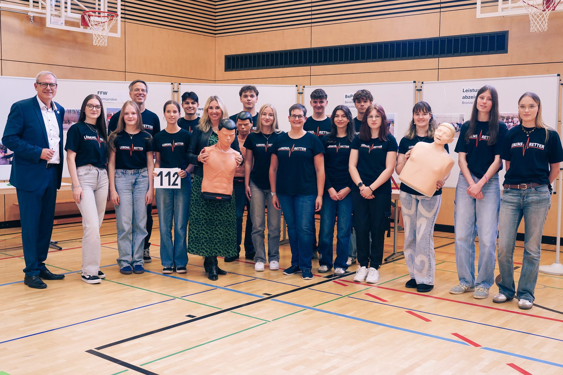 Das Friedrich-List-Gymnasium bringt das Thema „Leben retten“ auf den Stundenplan. 20 Lehrerinnen und Lehrer aus Unterfranken nahmen am FLG an einer Fortbildung zur Wiederbelebung teil, deren Inhalte sie nun an ihre Schüler weitergeben wollen. Bei der Auftaktveranstaltung zur bayernweiten Fortbildungsoffensive mit Kultusministerin Anna Stolz gab es für die teilnehmenden Schulen auch wertvolle „Phantome“.