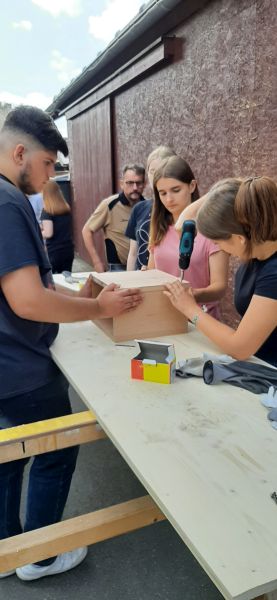 Wöchentlich überprüften sie das Schulbienenvolk. Jede einzelne Wabe wurde kontrolliert, besonders intensiv während der Zeit der Schwarmbildung. Einer der Höhepunkte der Imkerarbeit sind die Kennzeichnung einer neuen Königin und die Bildung eines Ablegers. Damit stehen den Mitgliedern der Bienenarbeitsgruppe künftig zwei Bienenvölker zur Verfügung.
