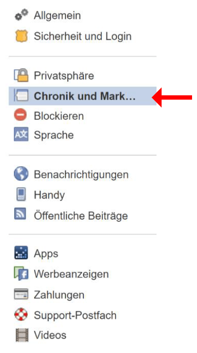 Links siehst du nun verschiedene Einstellungen. Klicke auf „Chronik und Markierungen“
