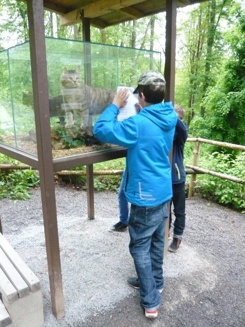 Die Schülerinnen und Schüler besuchten den Wildpark Klaushof in der Nähe von Bad Kissingen. Bei einer interessanten und abwechslungsreichen Führung beobachteten die Kinder die Wildkatzen in ihrem Gehege aus der Nähe und sahen zu, wie der Tierpfleger sie fütterte. Anschließend gingen sie auf dem Wildkatzenlehrpfad allen ihren Fragen über Wildkatzen auf den Grund: