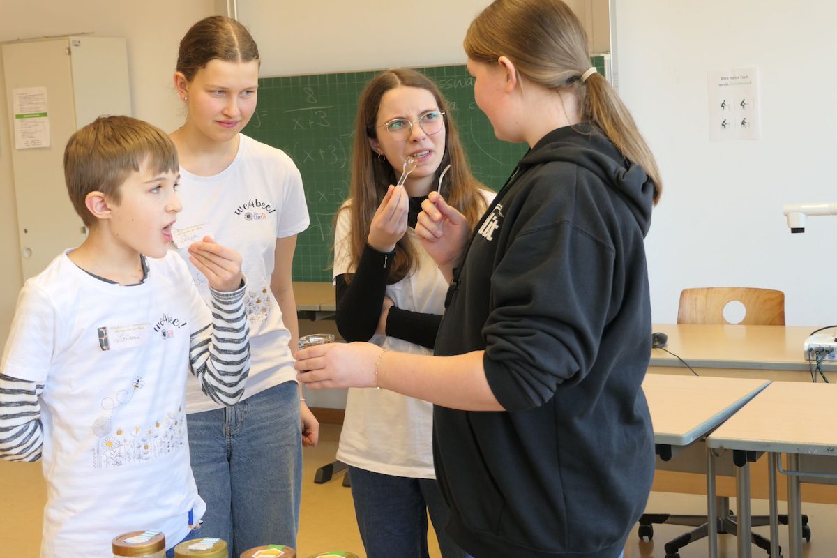 Unser Imker-Team hat bei der Meisterschaft der bayerischen Jungimkerinnen und Jungimker in Sulzbach-Rosenberg toll abgeschnitten: das Team belegte den 6. Platz von 13 teilnehmenden Schulen. In diesem Jahr war die Honigkunde das Thema der theoretischen und praktischen Prüfung. Wer schon einmal Kastanienhonig probiert hat, versteht die prüfenden Blicke unserer Schülerinnen und Schüler auf dem letzten Bild in der Slideshow!