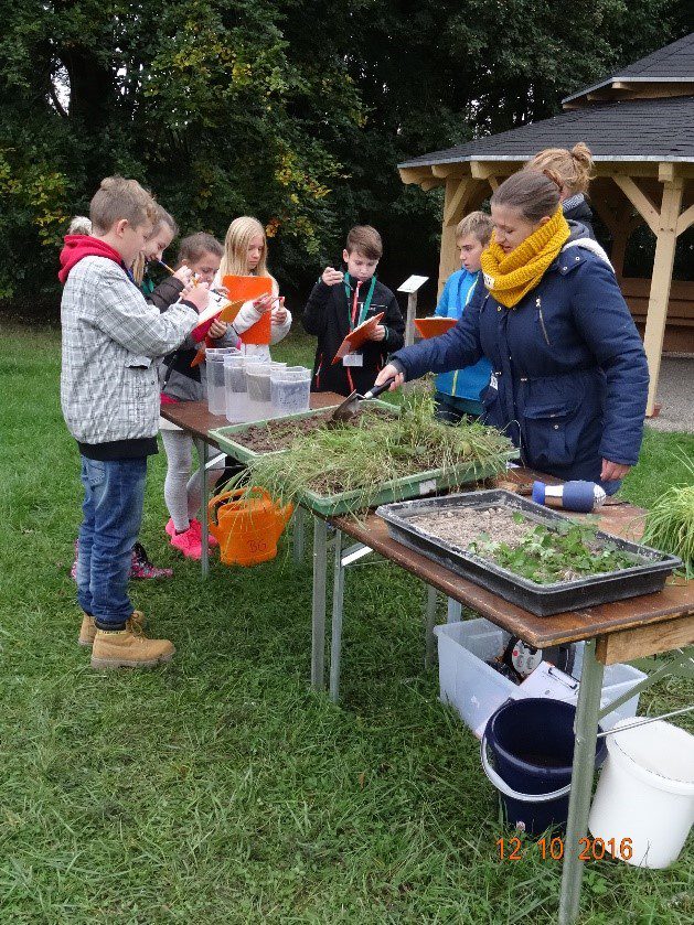 Rund um das Thema Wasser und Pflanzen experimentieren die Schülerinnen und Schüler im Botanischen Garten mit den Studierenden der Universität Würzburg: Sie untersuchten die Wasserrückhaltekapazität von unterschiedlichen Böden, erforschten den Weg des Wassers durch die Pflanze und lernten verschiedene Strategien kennen, wie Pflanzen ihren Wasserhaushalt regulieren.