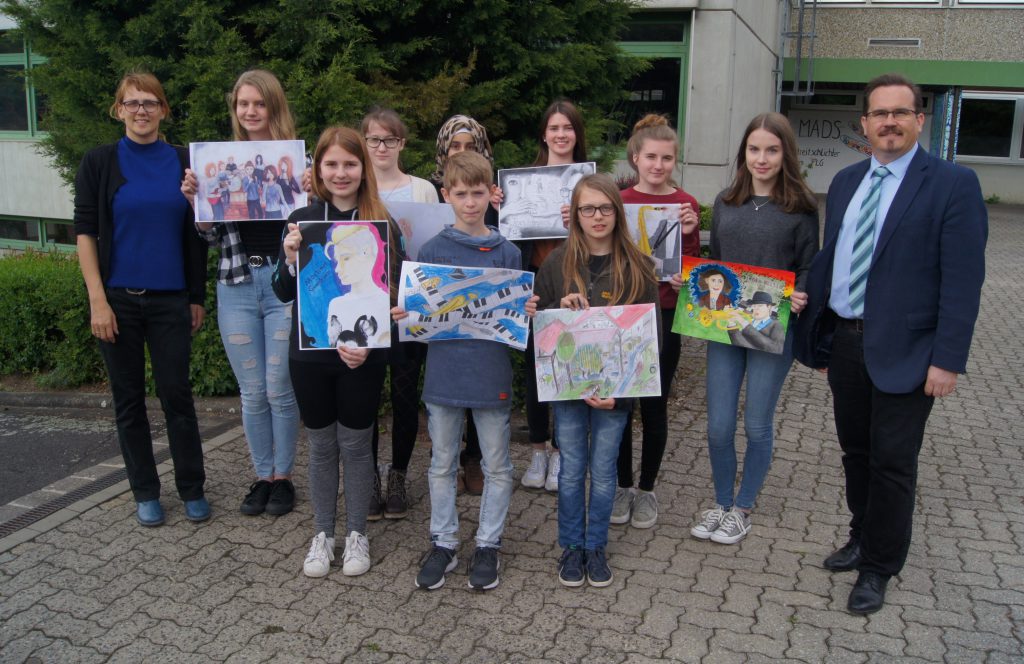 Neun Schülerinnen und Schüler des Friedrich-List-Gymnasiums konnten beim 49. internationalen Jugendwettbewerb „Jugend creativ“ der Volks- und Raiffeisenbanken eine Siegerurkunde oder eine Platzierung erreichen. Die Siegerehrung und die Überreichung der Preise fand am 10.4.19 in Karlstadt statt. Das diesjährige Thema „Musik bewegt“ bot vielseitige Gelegenheiten, die eigenen Musikvorlieben oder das eigene Musikempfinden ins Bild zu setzen. Dazu lieferten die Schüler Zeichnungen und Malereien, die selbstständig im Kunstunterricht erarbeitet wurden. Drei Schülerinnen (Keira Wiesner, Luna Hertrich und Luisa Fischer) erreichten sogar einen ersten Platz und haben nun die Chance auf eine Platzierung beim Landesentscheid.
