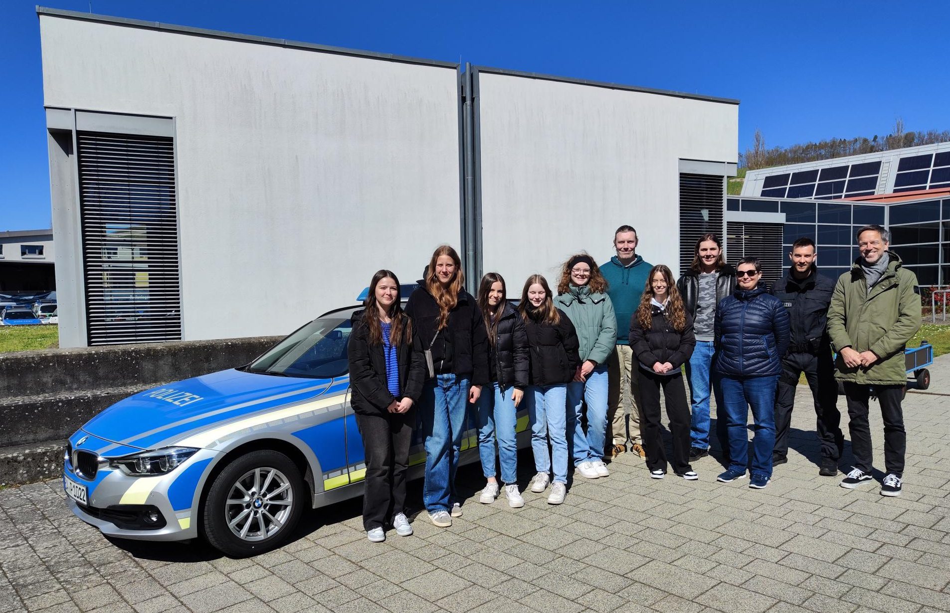 Die spannende Exkursion wurde mit einer Besichtigung eines Polizeiwagens abgerundet, was den Schülern weitere praxisnahe Einblicke in die Arbeit der Polizei ermöglichte. Ein gemeinsames Abschlussfoto dokumentierte diesen lehrreichen und anregenden Tag.