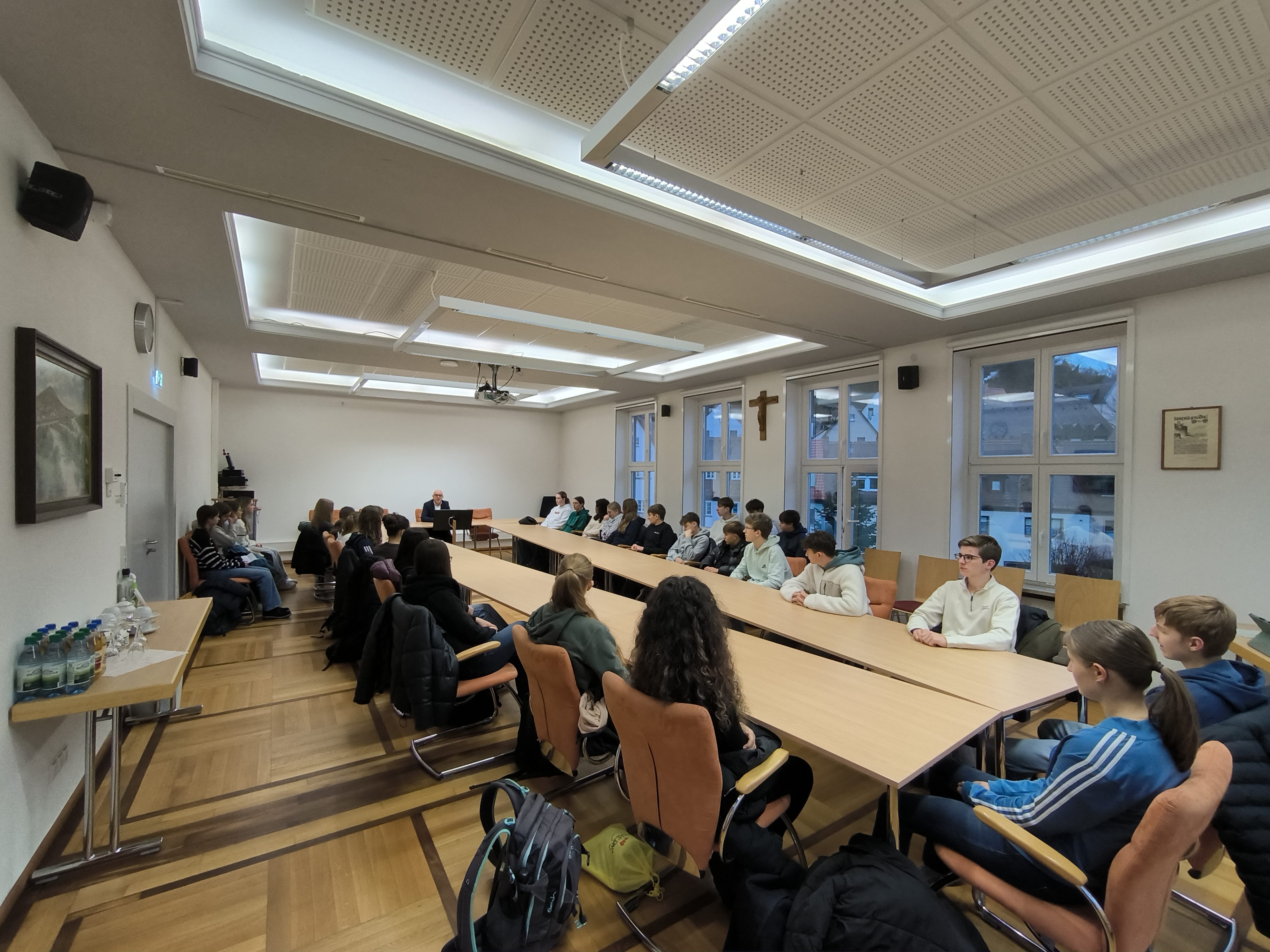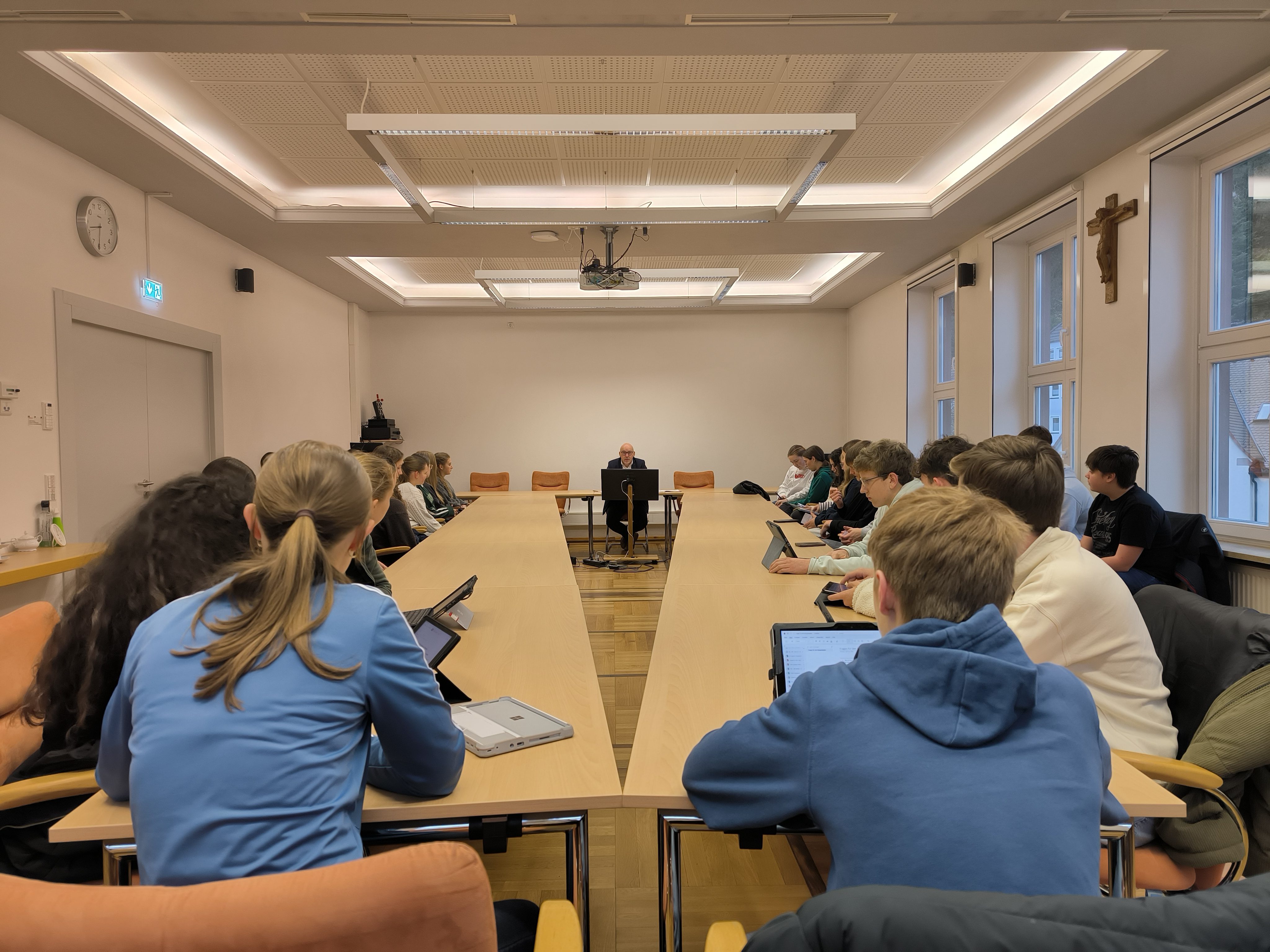 Im Sitzungssaal wurden die Schülerinnen und Schüler vom Ersten Bürgermeister Jürgen Lippert herzlich empfangen. Bereits im Vorfeld hatten die Klassen zahlreiche Fragen erarbeitet: Diese reichten von ganz praktischen Aspekten des Bürgermeisteramtes über den Umgang mit Meinungsverschiedenheiten bis hin zu ethischen Fragestellungen im politischen Alltag.