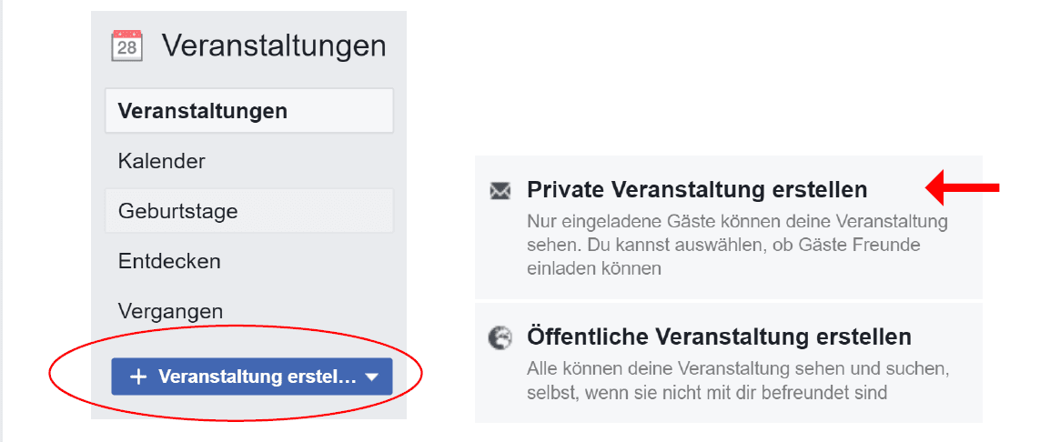 Achtung: Hier musst du unbedingt auswählen, dass es eine „Private Veranstaltung“ ist.