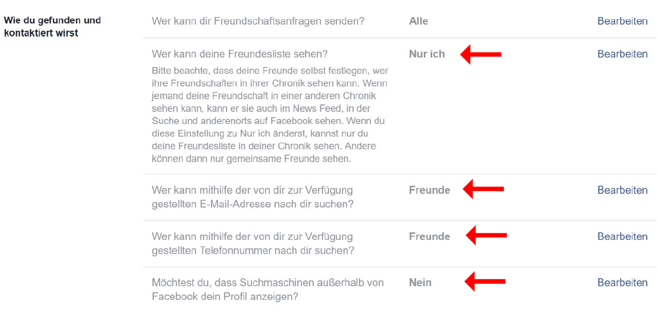 Außerdem solltest du darauf achten, dass nur deine Freunde dich unter deiner E-Mail Adresse oder Handynummer finden können.