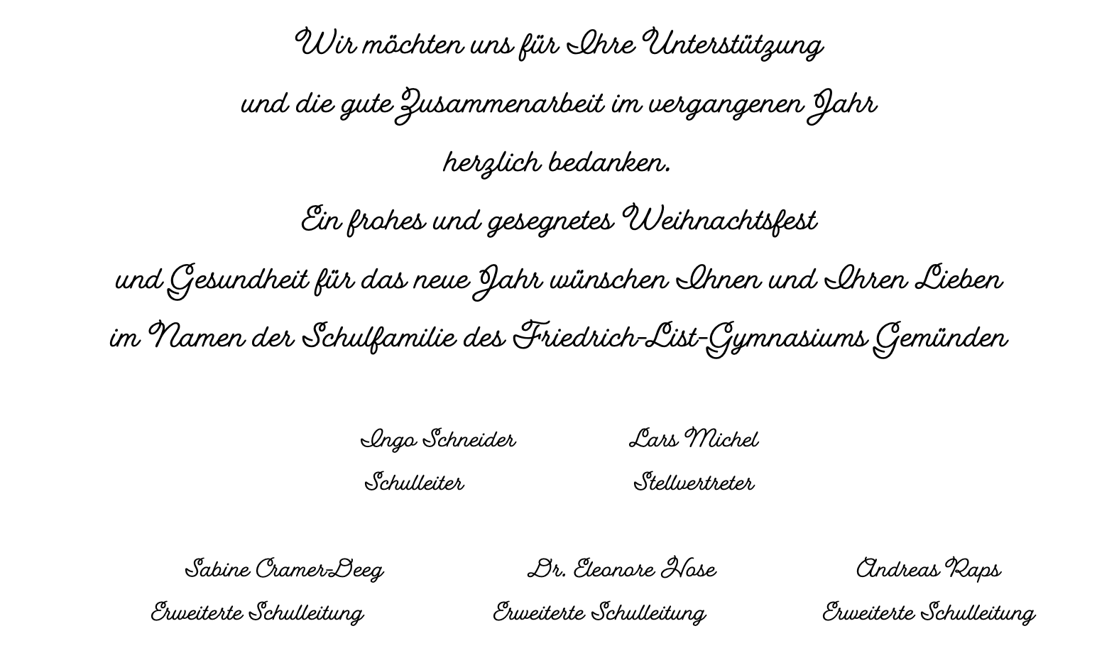 Wir wünschen der Schulfamilie schöne Weihnachtsferien!